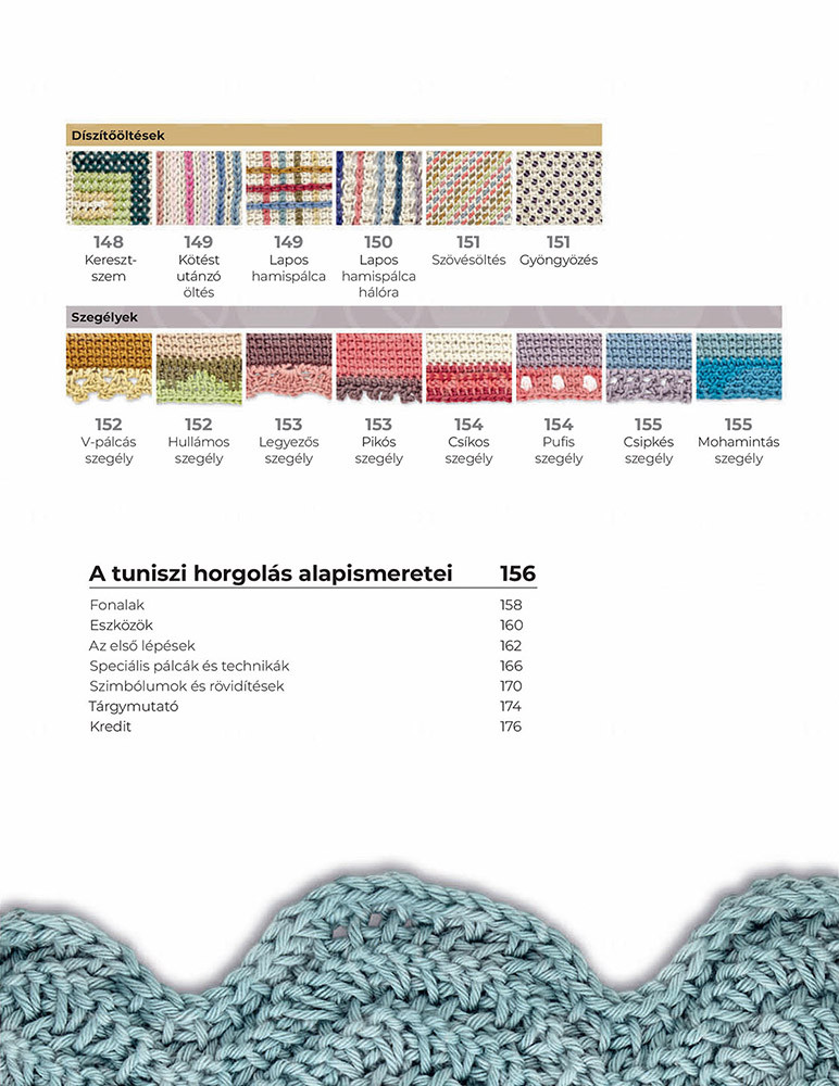 A valós méretű mintadarabok fotói segítenek abban, hogy azonnal ellenőrizhesd az általad készített horgolást. A leszámolható mintarajzok és a fázisképek jól kiegészítik az egyszerű leírásokat. A tuniszi horgolás mintagyűjteménye a horgolás szerelmeseinek kínál újabb felfedeznivalókat, hogy tovább fejleszthessék kreativitásukat.