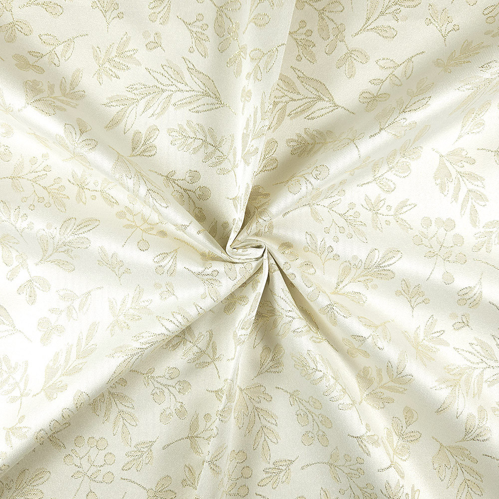 Ez a csillogó fagyalág mintás dekorszövet sokoldalú, erős és esztétikus anyag, amely tökéletes választás, ha tartós és mutatós textíliát keresel. Kevert szálas összetételének köszönhetően jobban bírja a mindennapi igénybevételt, mint a hagyományos vászon, így ideális párnák, táskák, asztalterítők és különféle lakásdekorációk készítéséhez.