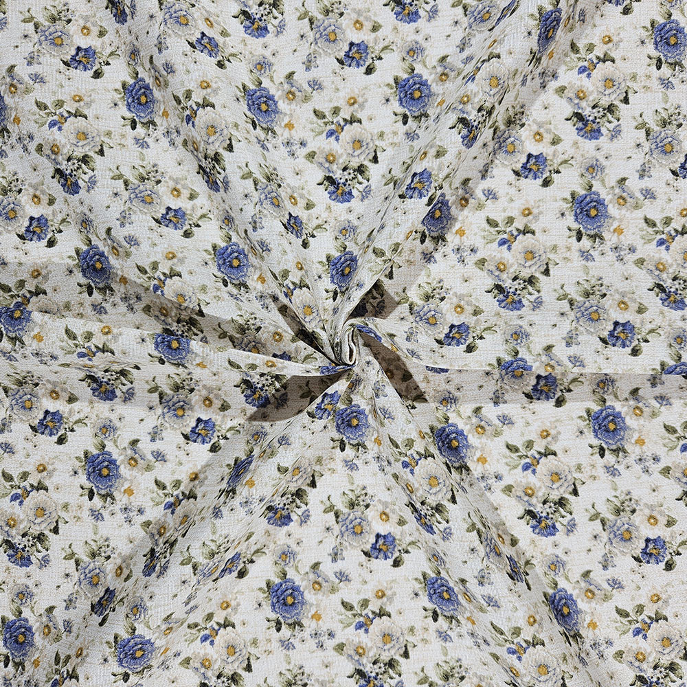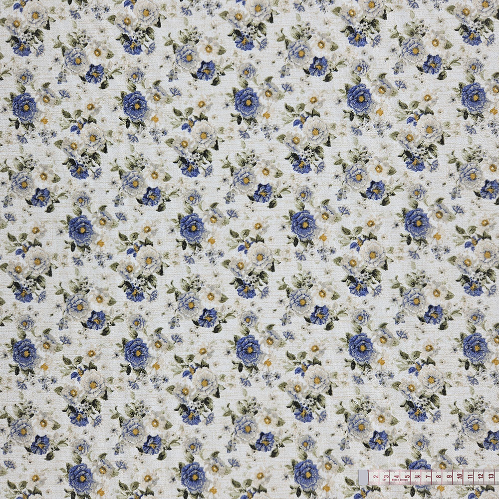 Ez a kék apró rózsás dekorszövet sokoldalú, erős és esztétikus anyag, amely tökéletes választás, ha tartós és mutatós textíliát keresel. Kevert szálas összetételének köszönhetően jobban bírja a mindennapi igénybevételt, mint a hagyományos vászon, így ideális párnák, táskák, asztalterítők és különféle lakásdekorációk készítéséhez.