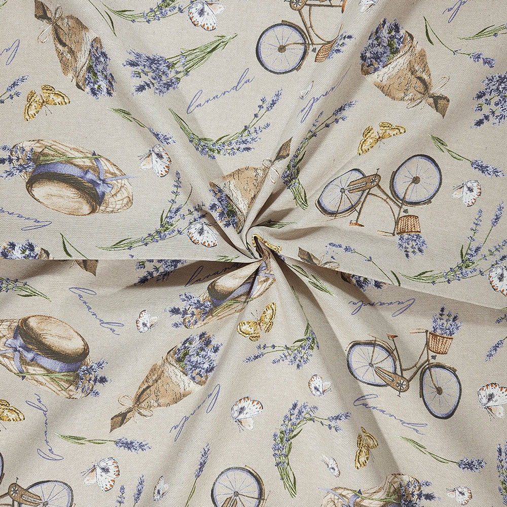 Ez a Provence-i levendula hangulatú dekorszövet sokoldalú, erős és esztétikus anyag, amely tökéletes választás, ha tartós és mutatós textíliát keresel. Kevert szálas összetételének köszönhetően jobban bírja a mindennapi igénybevételt, mint a hagyományos vászon, így ideális párnák, táskák, asztalterítők és különféle lakásdekorációk készítéséhez.