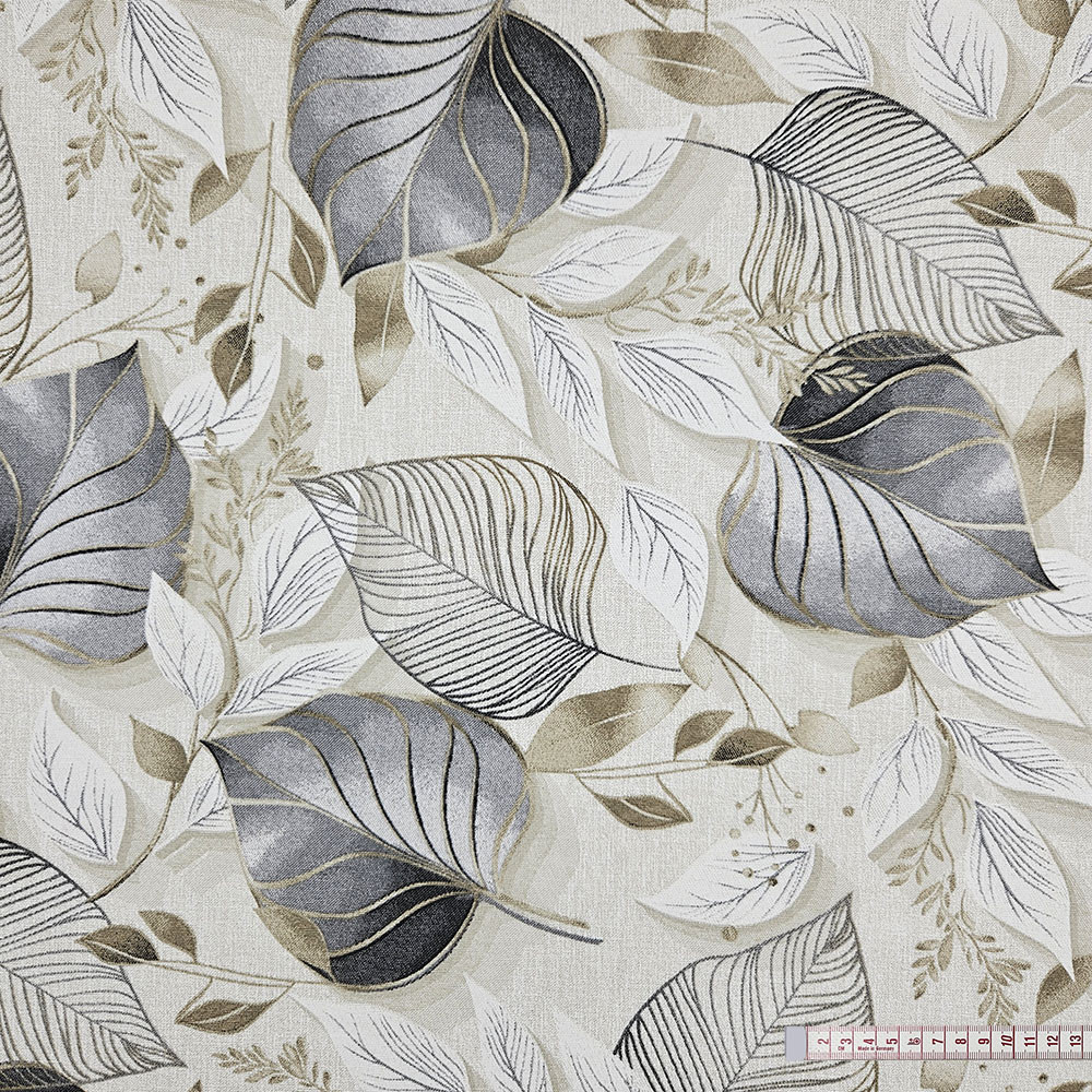 Ez a szürke leveles dekorszövet sokoldalú, erős és esztétikus anyag, amely tökéletes választás, ha tartós és mutatós textíliát keresel. Kevert szálas összetételének köszönhetően jobban bírja a mindennapi igénybevételt, mint a hagyományos vászon, így ideális párnák, táskák, asztalterítők és különféle lakásdekorációk készítéséhez.