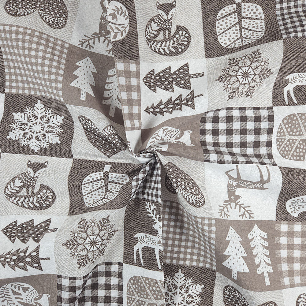 Ez a téli patchwork mesevilág mintájú dekorszövet sokoldalú, erős és esztétikus anyag, amely tökéletes választás, ha tartós és mutatós textíliát keresel. Kevert szálas összetételének köszönhetően jobban bírja a mindennapi igénybevételt, mint a hagyományos vászon, így ideális párnák, táskák, asztalterítők és különféle lakásdekorációk készítéséhez.
