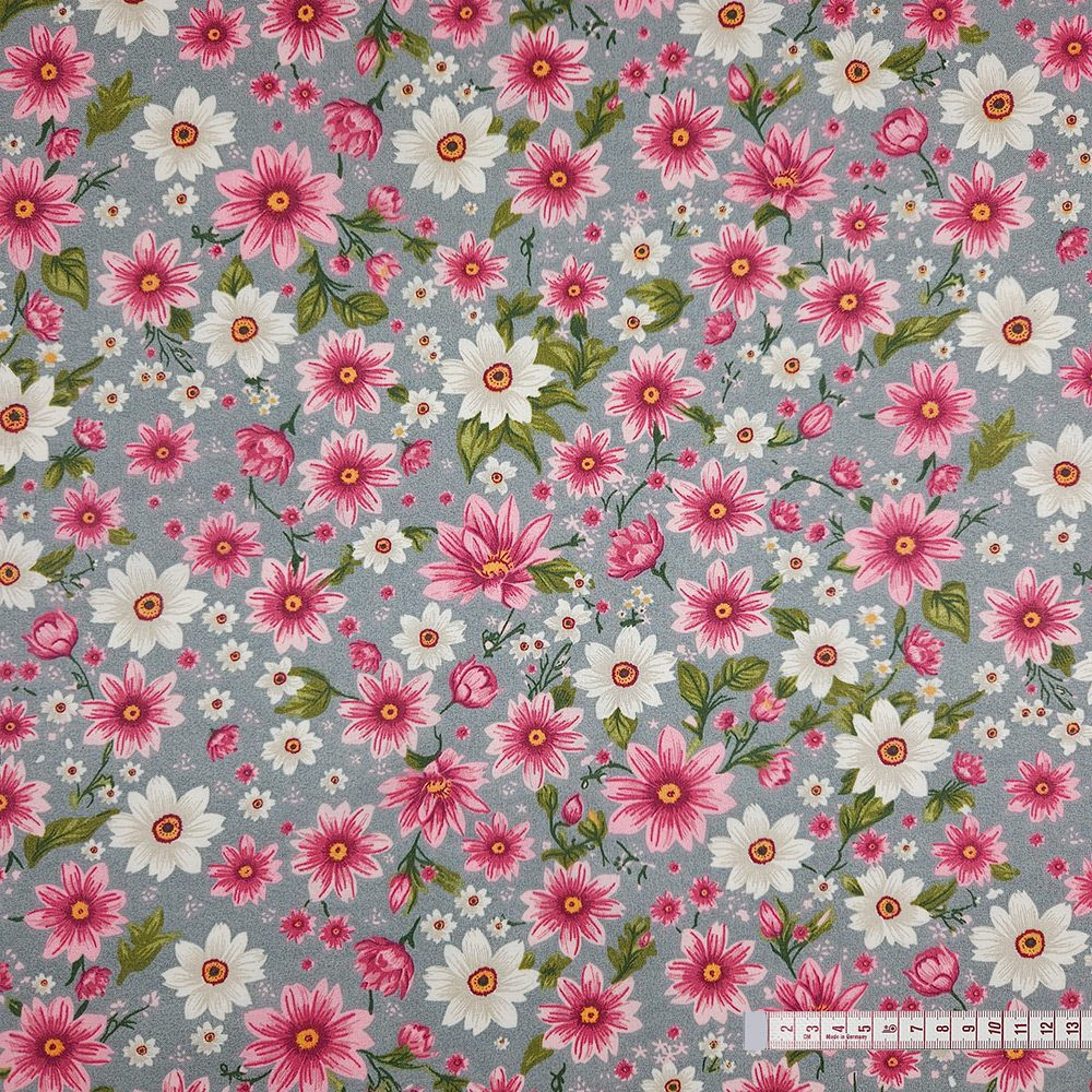 Ez a Virágok szürke alapon pamutvászon tökéletes választás, ha szeretnél vidám, természetes hangulatot csempészni saját kézműves remekeidbe. A 100% pamut alapanyag biztosítja a jó szellőzést, a kellemes tapintást és a könnyű kezelhetőséget – kezdőknek és haladóknak egyaránt ideális.
