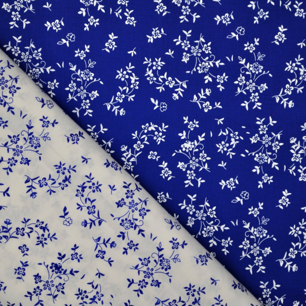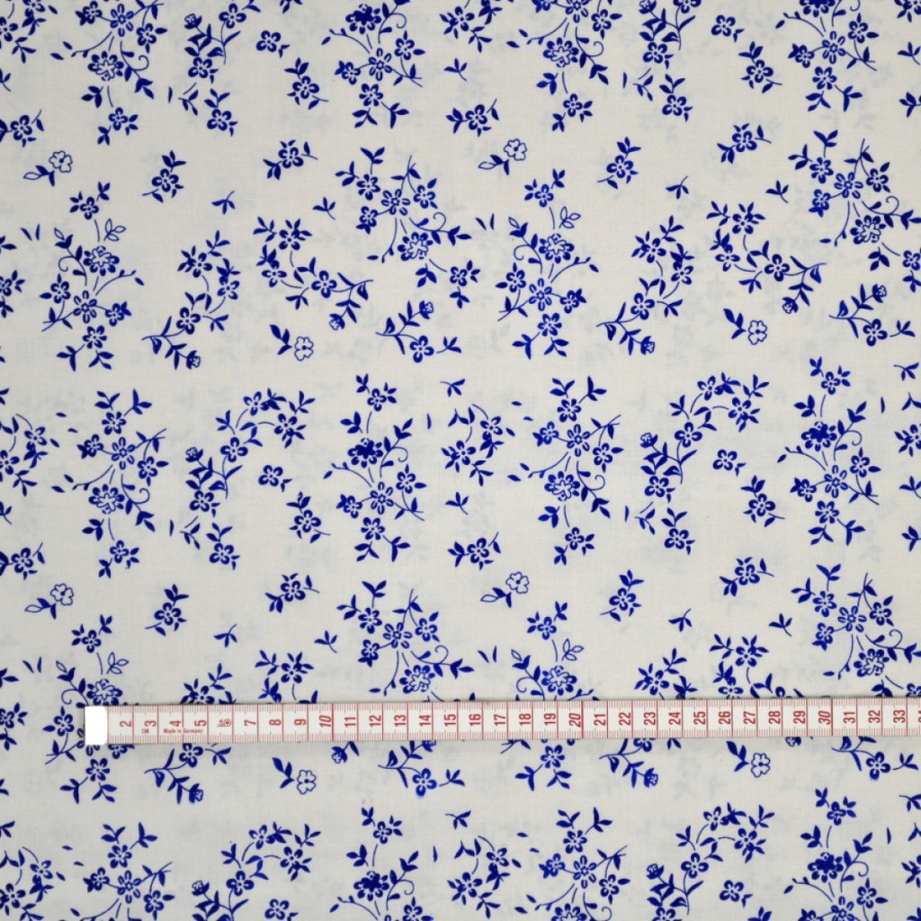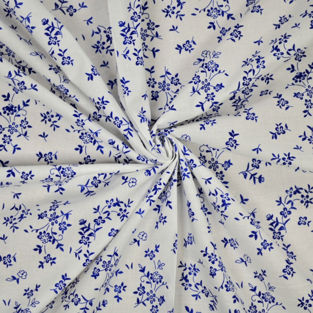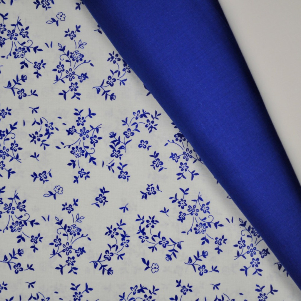 Virágos kékfestő (fehér alapon királykék) pamutvászon