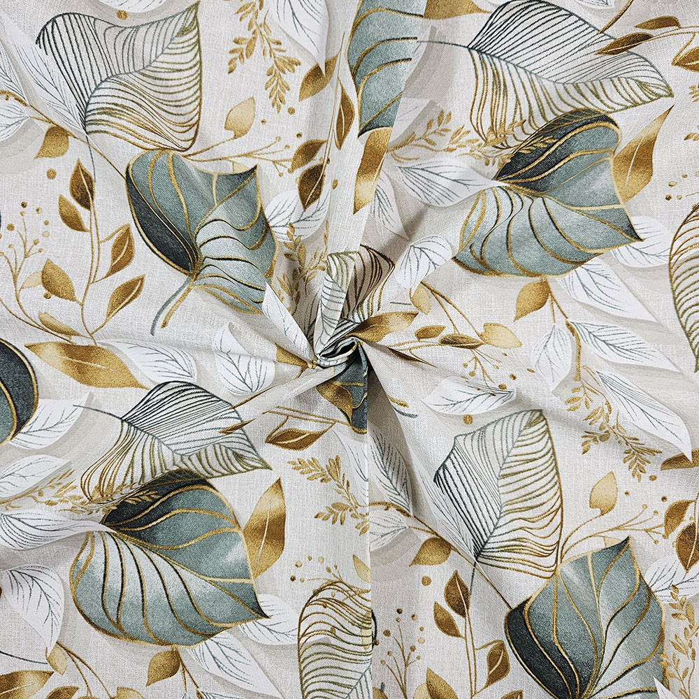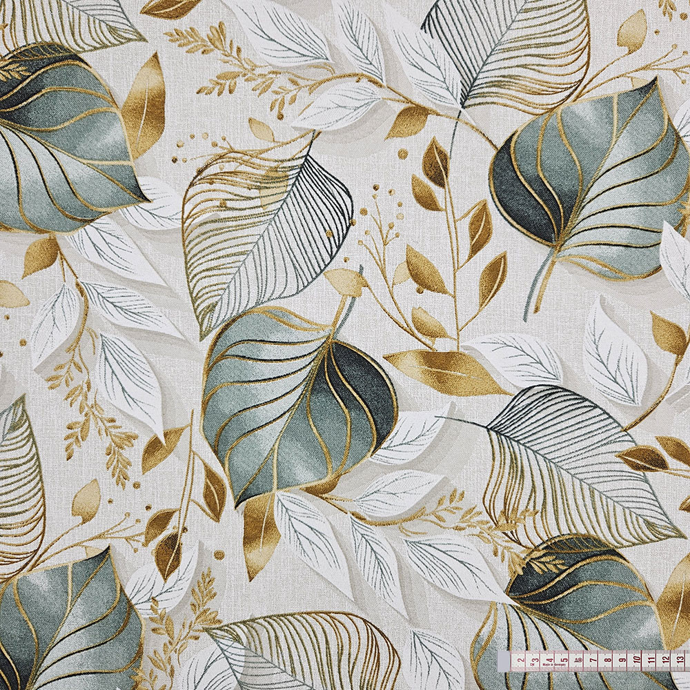 Ez a zöld leveles dekorszövet sokoldalú, erős és esztétikus anyag, amely tökéletes választás, ha tartós és mutatós textíliát keresel. Kevert szálas összetételének köszönhetően jobban bírja a mindennapi igénybevételt, mint a hagyományos vászon, így ideális párnák, táskák, asztalterítők és különféle lakásdekorációk készítéséhez.